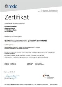 Die Firma Protheseus GmbH ist nach DIN EN ISO 13485 zertifiziert.